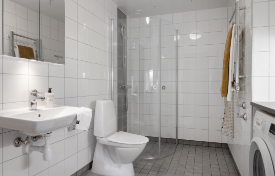 I hallen ligger ett lättskött klinkergolv medan du i övriga rum går på ett slitstarkt ekparkettgolv. I bostaden finns dessutom en väl tilltagen klädkammare. Vill du koppla av eller umgås med nära och kära finns en mysig gemensam innergård lättillgänglig.